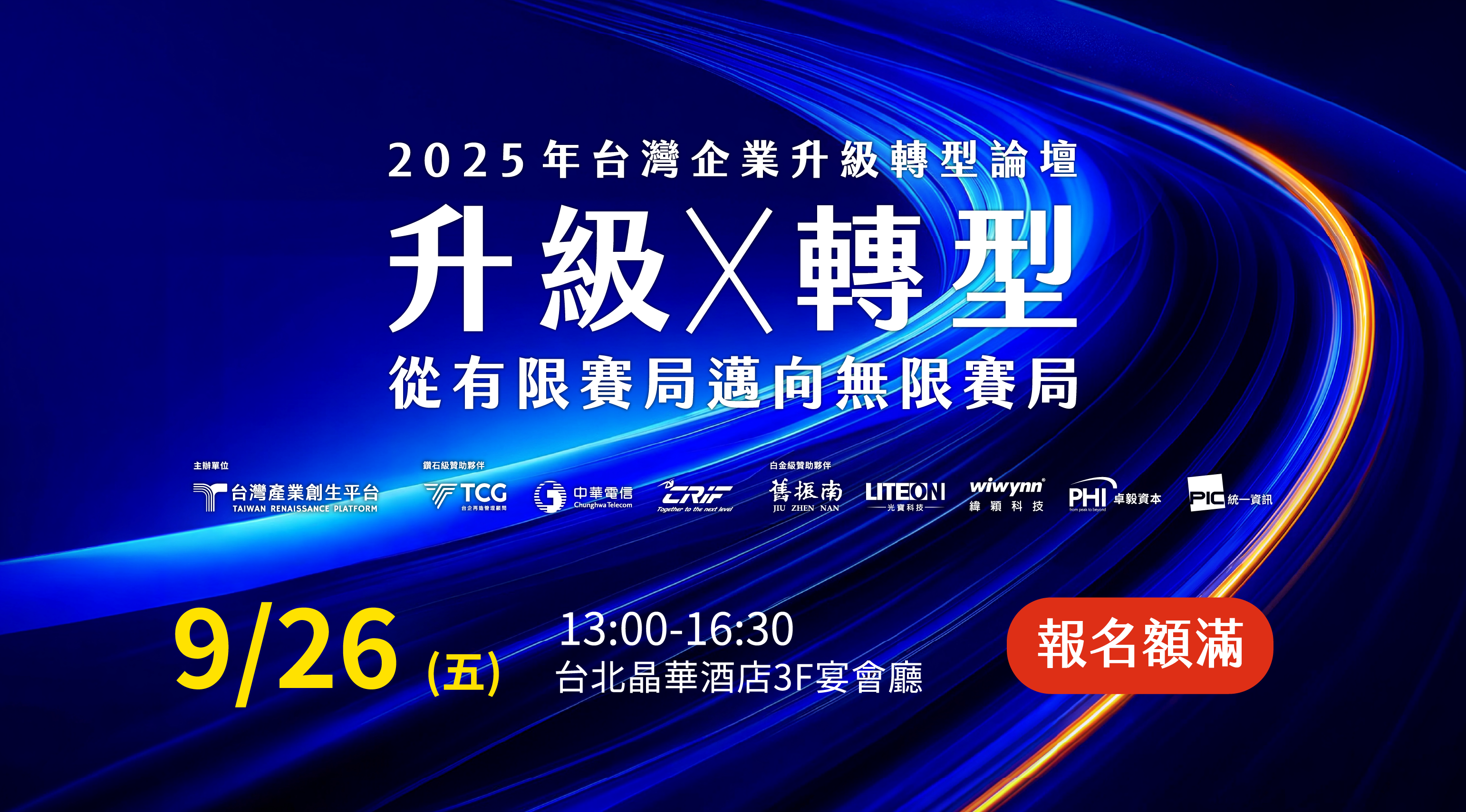*本論壇特別感謝下列贊助企業:台企再造管理顧問股份有限公司、中華電信、CRIF中華徵信所、舊振南食品股份有限公司、環球晶圓股份有限公司、光寶科技、緯穎科技、PHI Capital & 卓毅資本、統一資訊。
